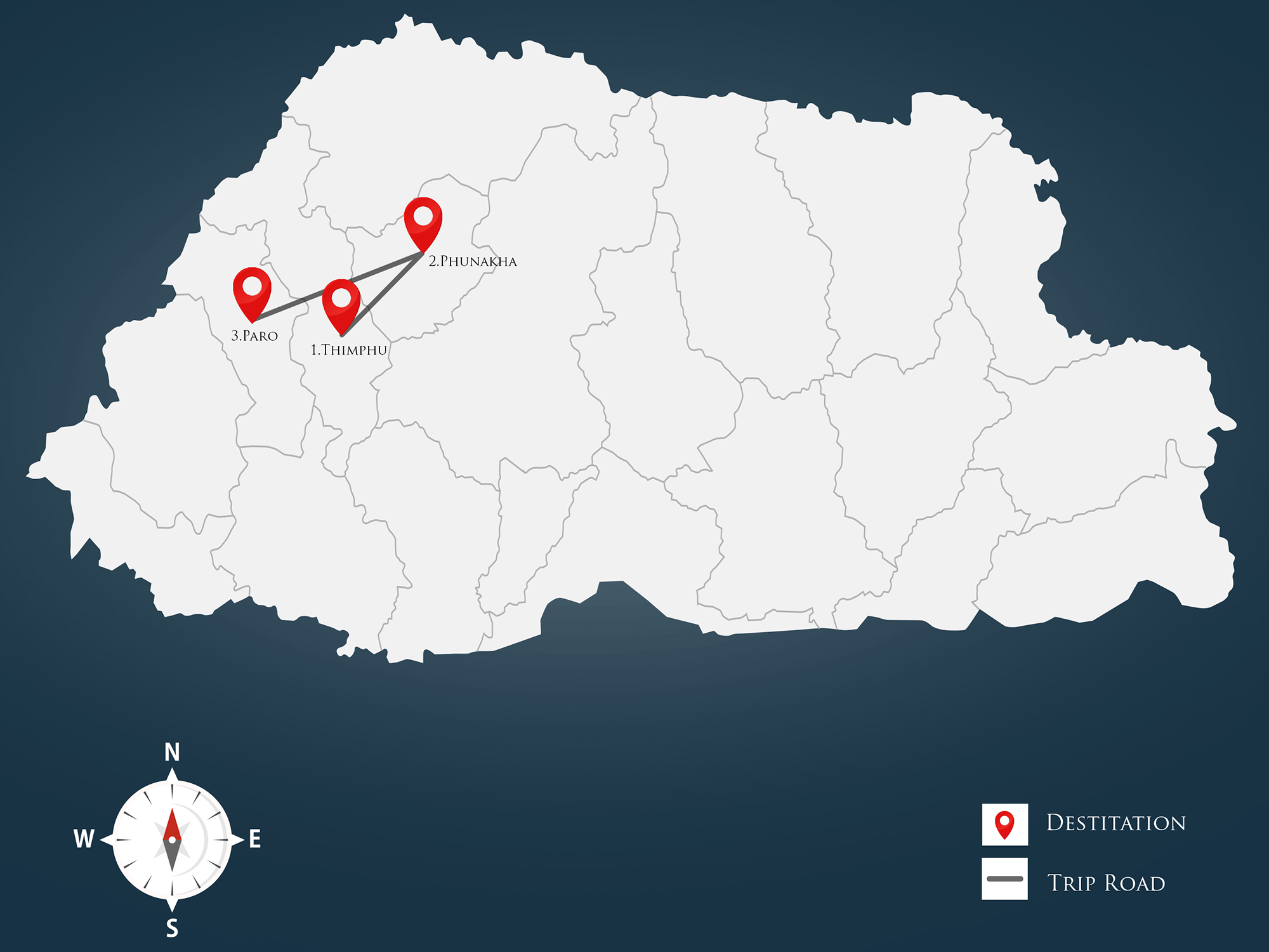 • Destination: Thimphu, Wangdue Phodrang (Gangtey), Punakha, Bumthang, Trongsa and Paro.